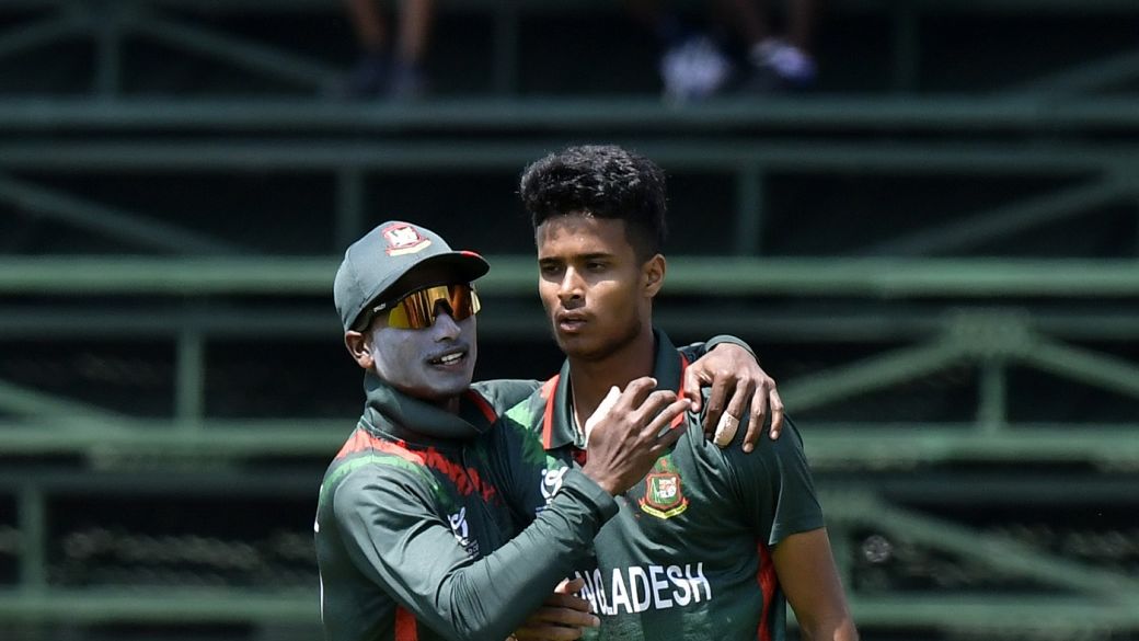 Ariful Islam and Rohanat Doullah Borson celebrate Akash Chand's wicket