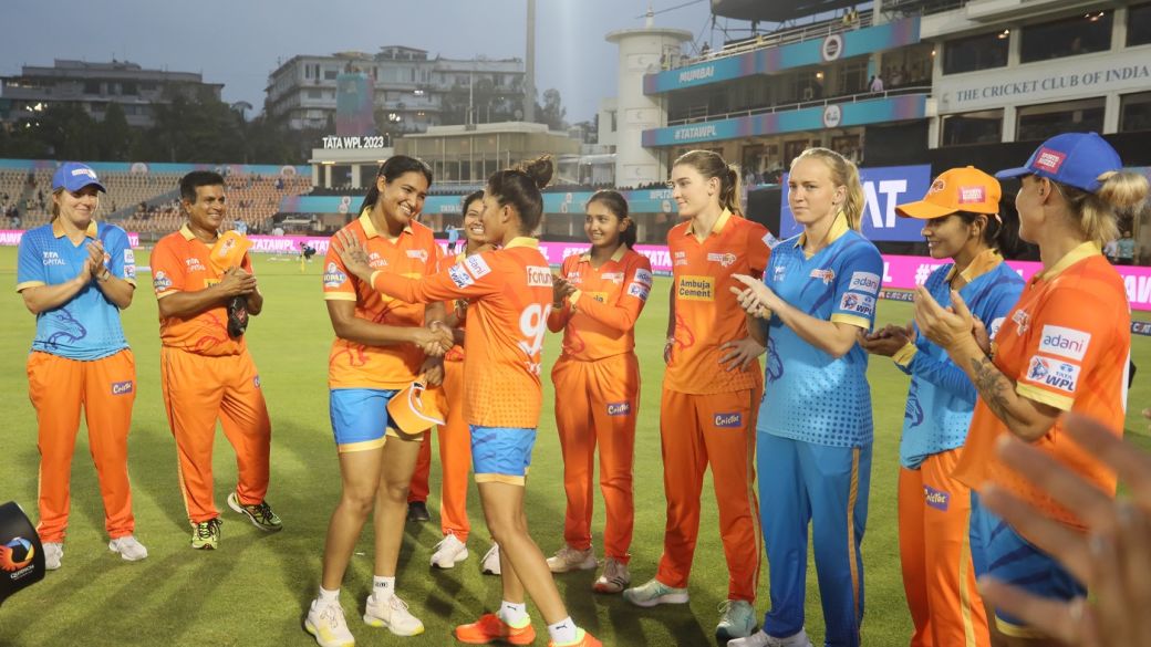 Ashwani Kumari gets her WPL cap from Sushma Verma